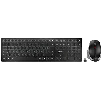 Cherry dw 9500 slim tastiera mouse incluso rf senza fili + bluetooth qwertz tedesco nero, grigio