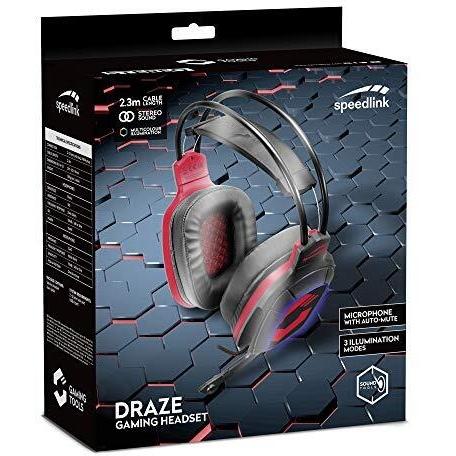 SpeedLink DRAZE Gaming Cuffie Over Ear via cavo Stereo Nero/Rosso Telecomando, regolazione del volume, Muto