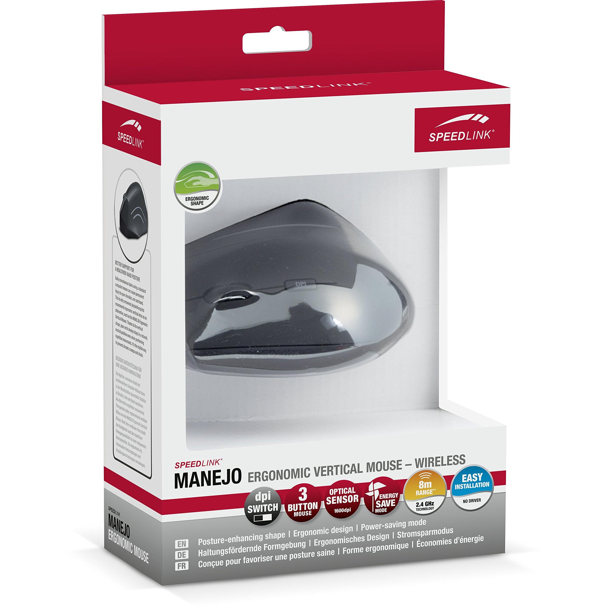 Speedlink MANEJO Ergonomic Vertical Mouse with 3 Buttons, 2.4GHz Wireless, DPI Switch and LED Lighting in Black