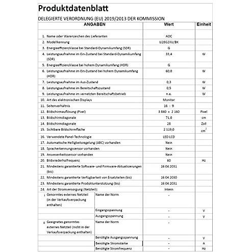 AOC - Monitor 28' LED IPS Gaming U28G2XU / BK 3840 x 2160 4K Ultra HD Tempo di Risposta 1 ms Frequenza di Aggiornamento 144 (Hz)