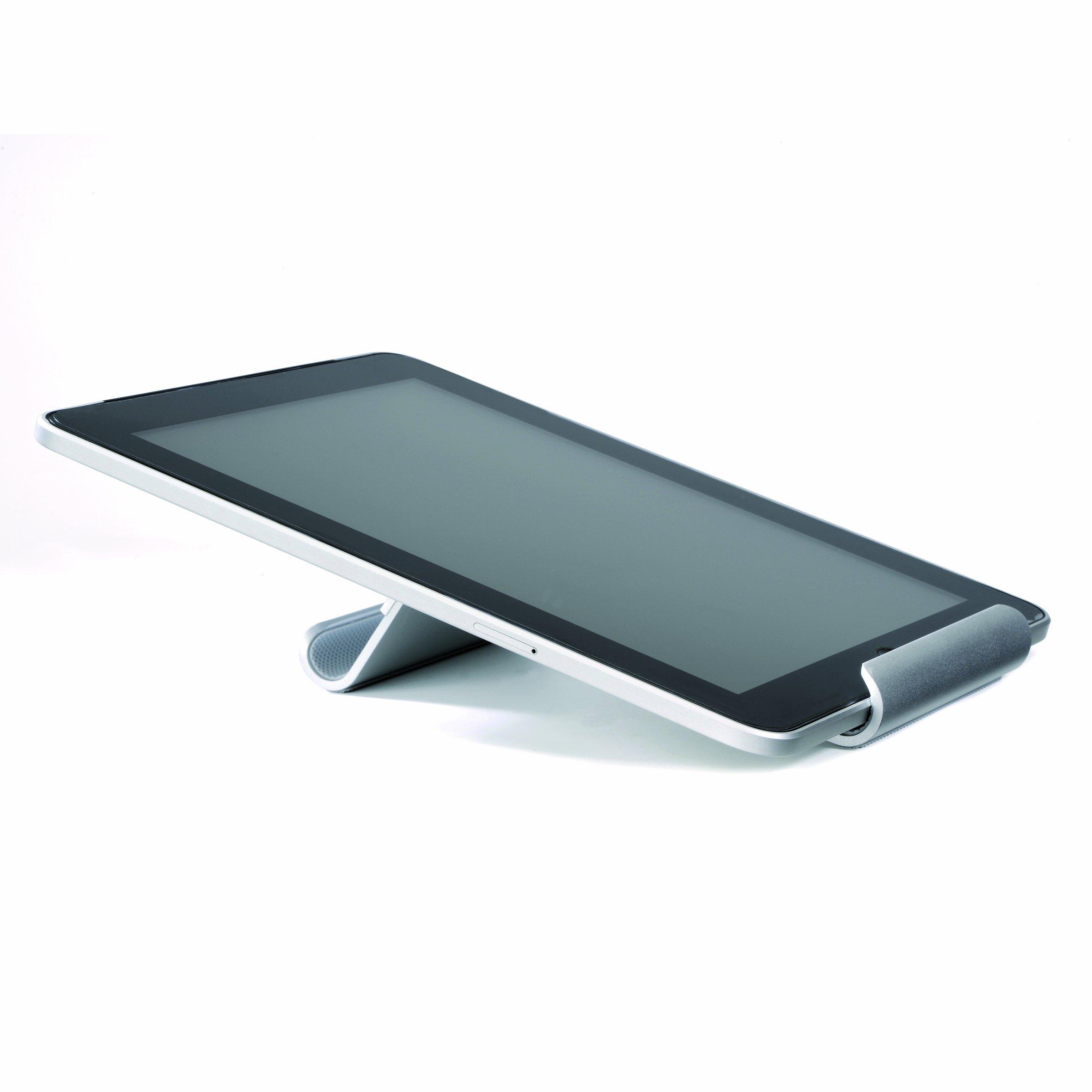 Supporto in alluminio con rivestimento silicone argento, lunghezza 25,6 cm (10,1″). Si adatta passivamente a tablet fino a 10,1 cm, ideale per uso ...