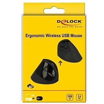 DeLOCK - Mouse verticale ergonomico senza fili, USB, Nero