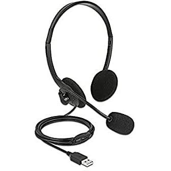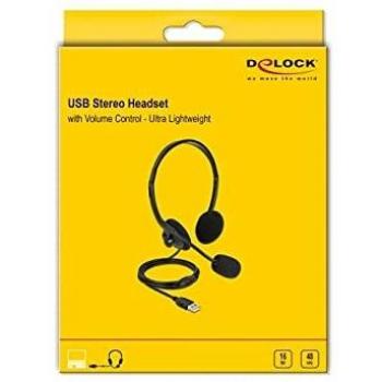 Delock Cuffia stereo USB con controllo del volume per PC e Notebook (Cablato, USB-A), Cuffie da ufficio, Nero
