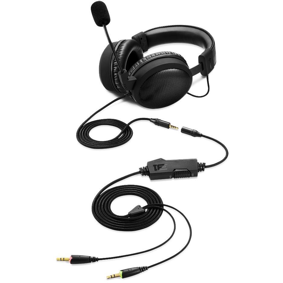 Cuffie sovraurali nere con microfono integrato e connettori a 3,5 mm doppio, adatte a PC, console e dispositivi mobili; risposta audio 20‑20 000 ...