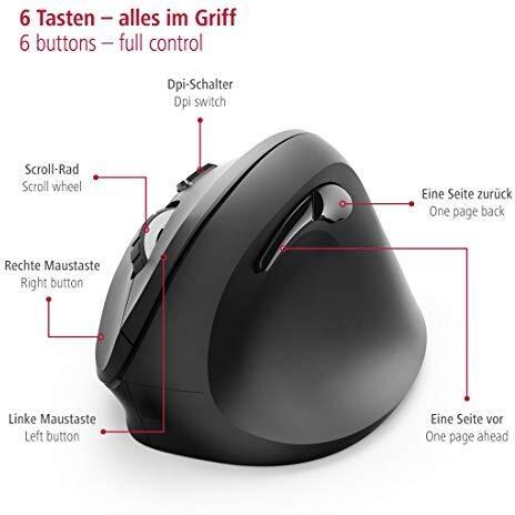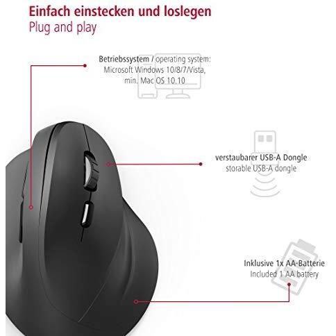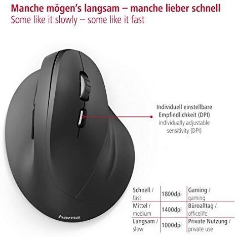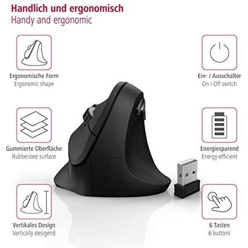 Hama Mouse ergonomico Senza fili (radio) Ottico Nero 6 Tasti 1800 dpi Ergonomico