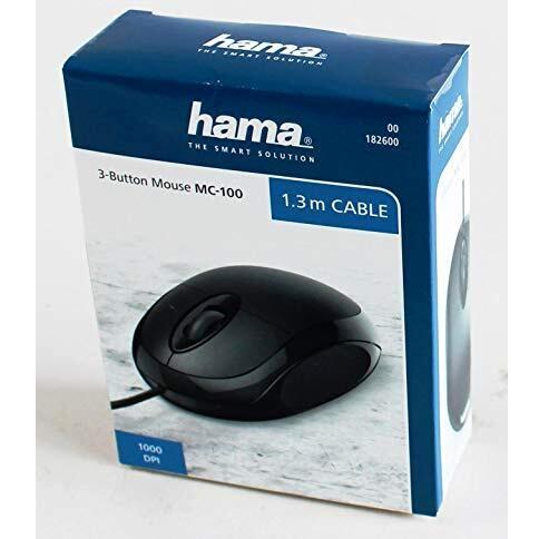 Mouse ottico Hama MC‑100 con cavo USB da 1,3 m e sensibilità di 1000 DPI, adatto a scrittura, navigazione e piccoli task di gaming. Tre pulsanti ...