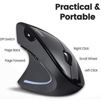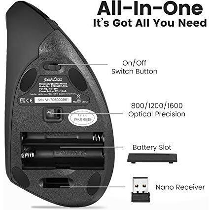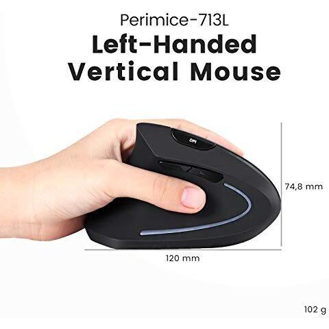 Perixx Perimice-713L Mouse ergonomico USB Ottico Nero 5 Tasti 2000 dpi Ergonomico