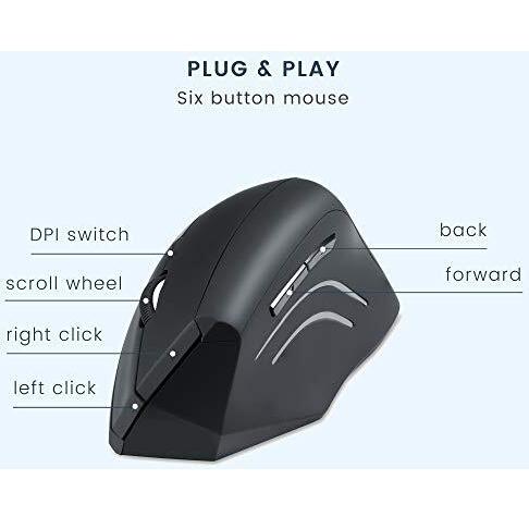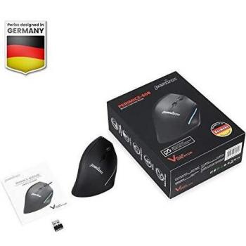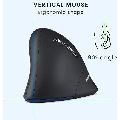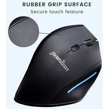 Perixx Perimice-608 Mouse ergonomico Senza fili (radio) Ottico Nero 6 Tasti 1600 dpi Ergonomico, Rotella di scorrimento integrata