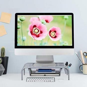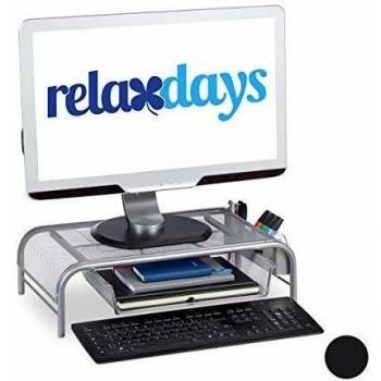 Relaxdays Supporto per monitor con cassetto, Rialzo per monitor, Argento
