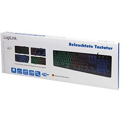 LOGILINK - Tastiera Universale USB Standard QWERTZ Retroilluminata Colore Nero
