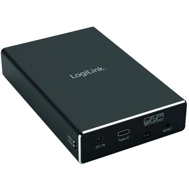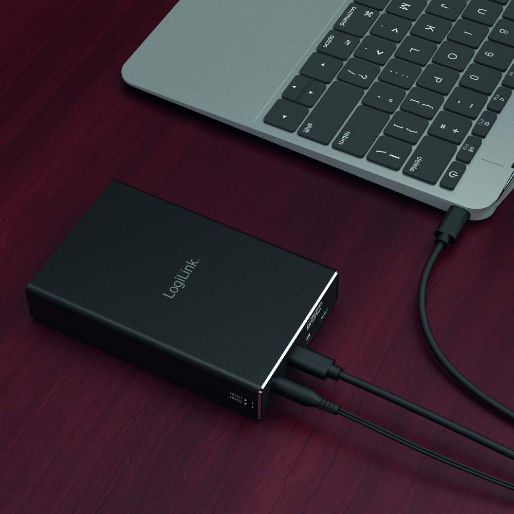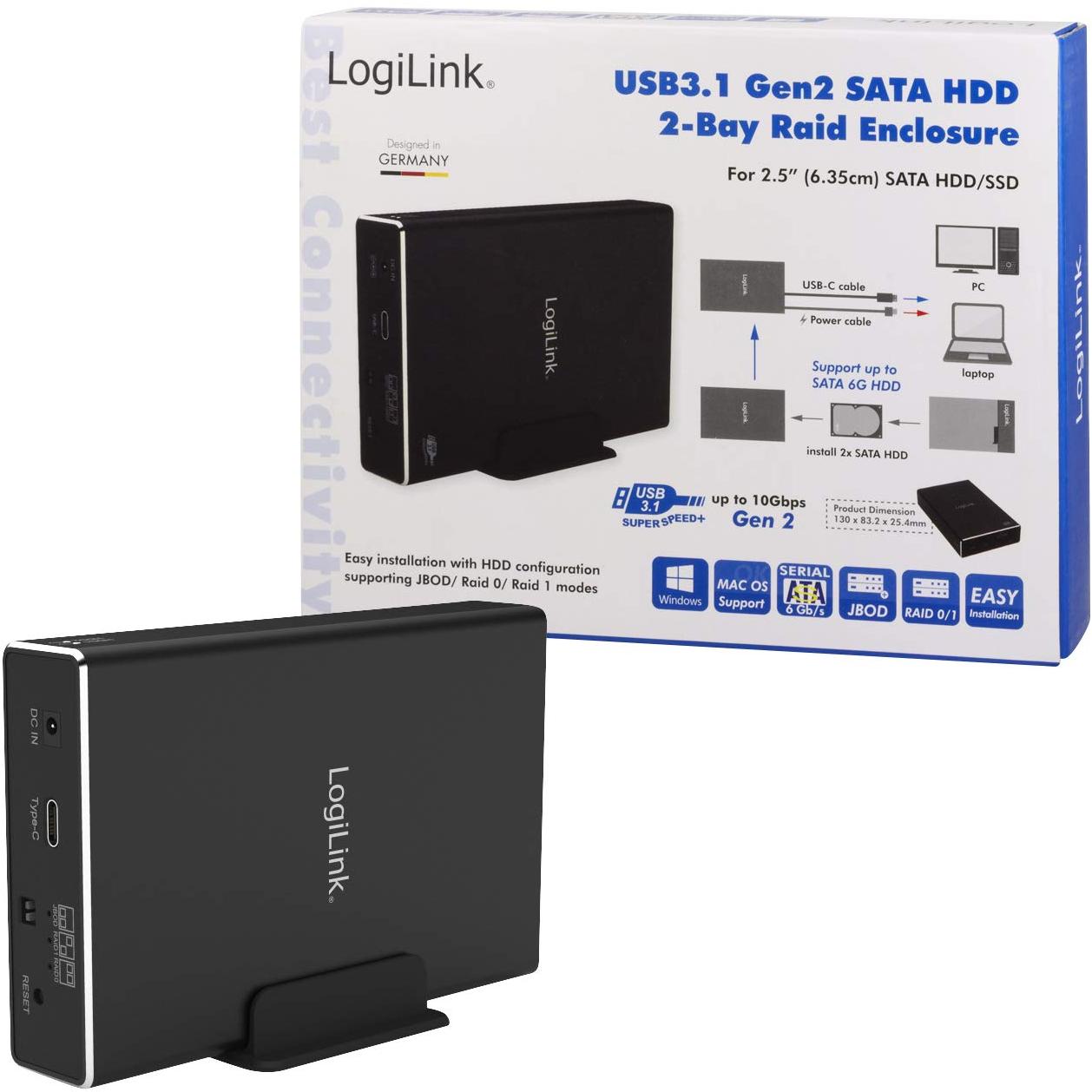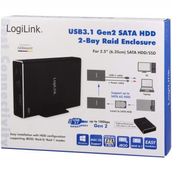 LogiLink UA0293 Dual Bay Housing for 2.5" SATA HDD/SSD, USB 3.1 Gen 2, RAID (0, 1, JBOD), Black