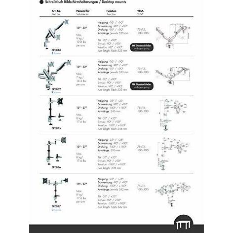 Supporto da tavolo LogiLink BP0075 per schermi fino a 27″ con braccio in alluminio lungo 246 mm e morsetto nero in acciaio inox; regola angolo, in ...