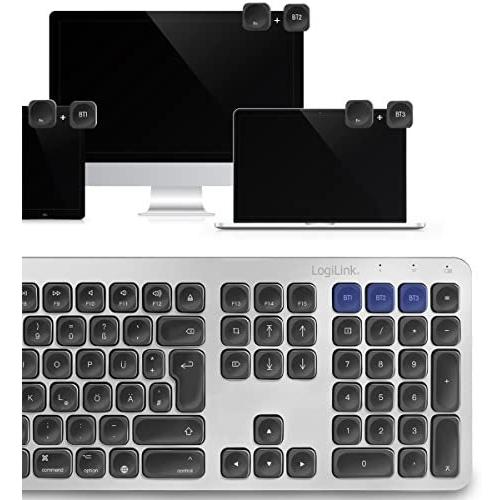 LogiLink ID0206 (DE, Senza fili), Tastiera, Grigio
