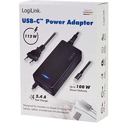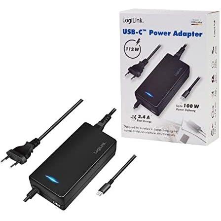 LogiLink PA0272 - Alimentatore USB-C 112W con ricarica simultanea per laptop, tablet e smartphone