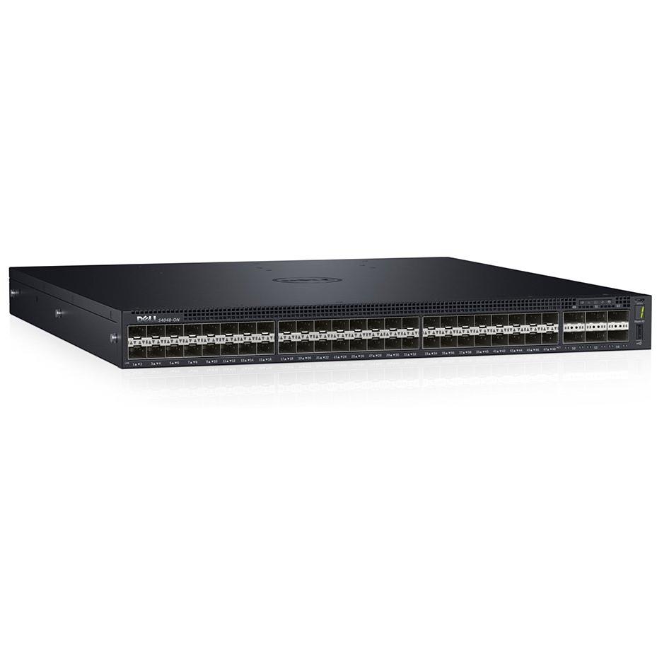Switch Dell X‑Series S4048‑ON in formato 1U con 48 porte SFP+ e una porta USB 2.0, supporta routing L2/L3, VLAN taggate, IPv4/IPv6, 802.1X RADIUS ...