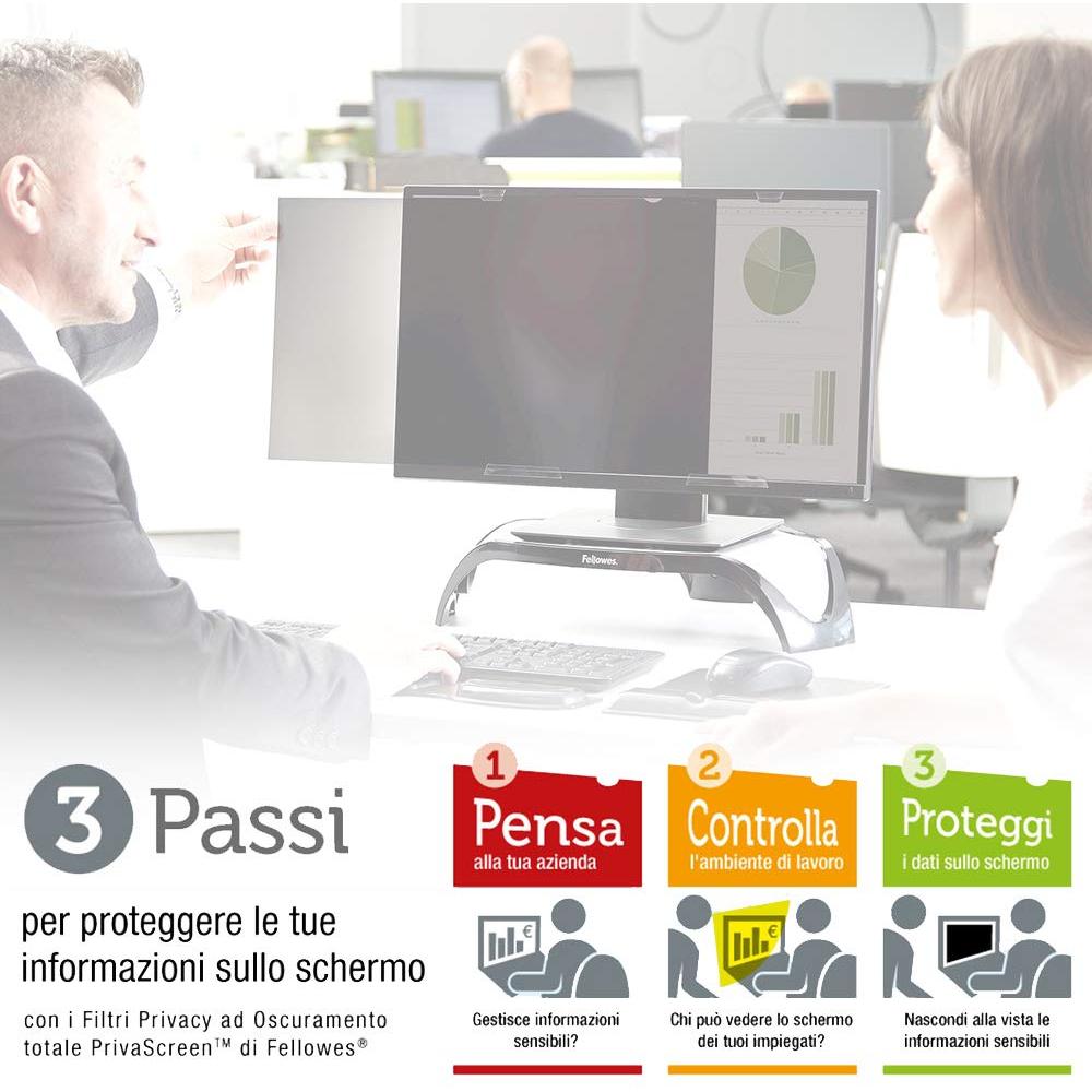 Il filtro privacy antiriflesso Fellowes PrivaScreen per laptop da 18,5″ in formato widescreen 16:9 si adatta perfettamente al display senza cornice, ...