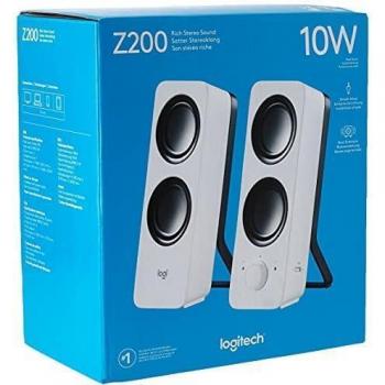 Logitech Z200 Altoparlanti per PC, Audio Stereo Completo, 10 Watt, 2 Ingressi Audio 3.5 mm, Jack per Cuffie, Bassi Regolabili, Controllo Volume, Presa EU/IT, Computer/TV/Smartphone/Tablet, Bianco