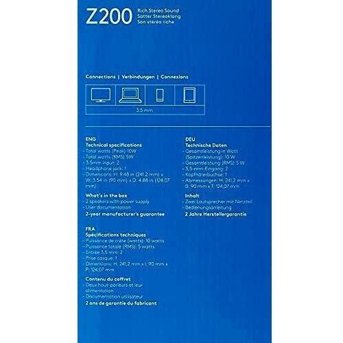 Logitech Z200 Altoparlanti per PC, Audio Stereo Completo, 10 Watt, 2 Ingressi Audio 3.5 mm, Jack per Cuffie, Bassi Regolabili, Controllo Volume, Presa EU/IT, Computer/TV/Smartphone/Tablet, Nero