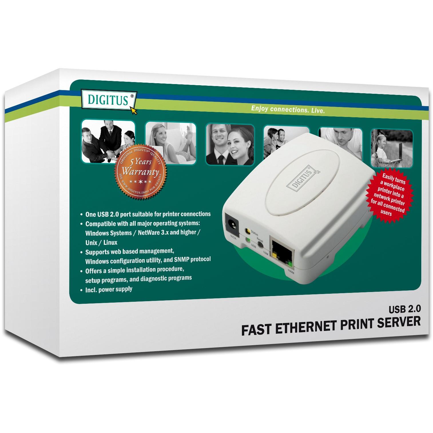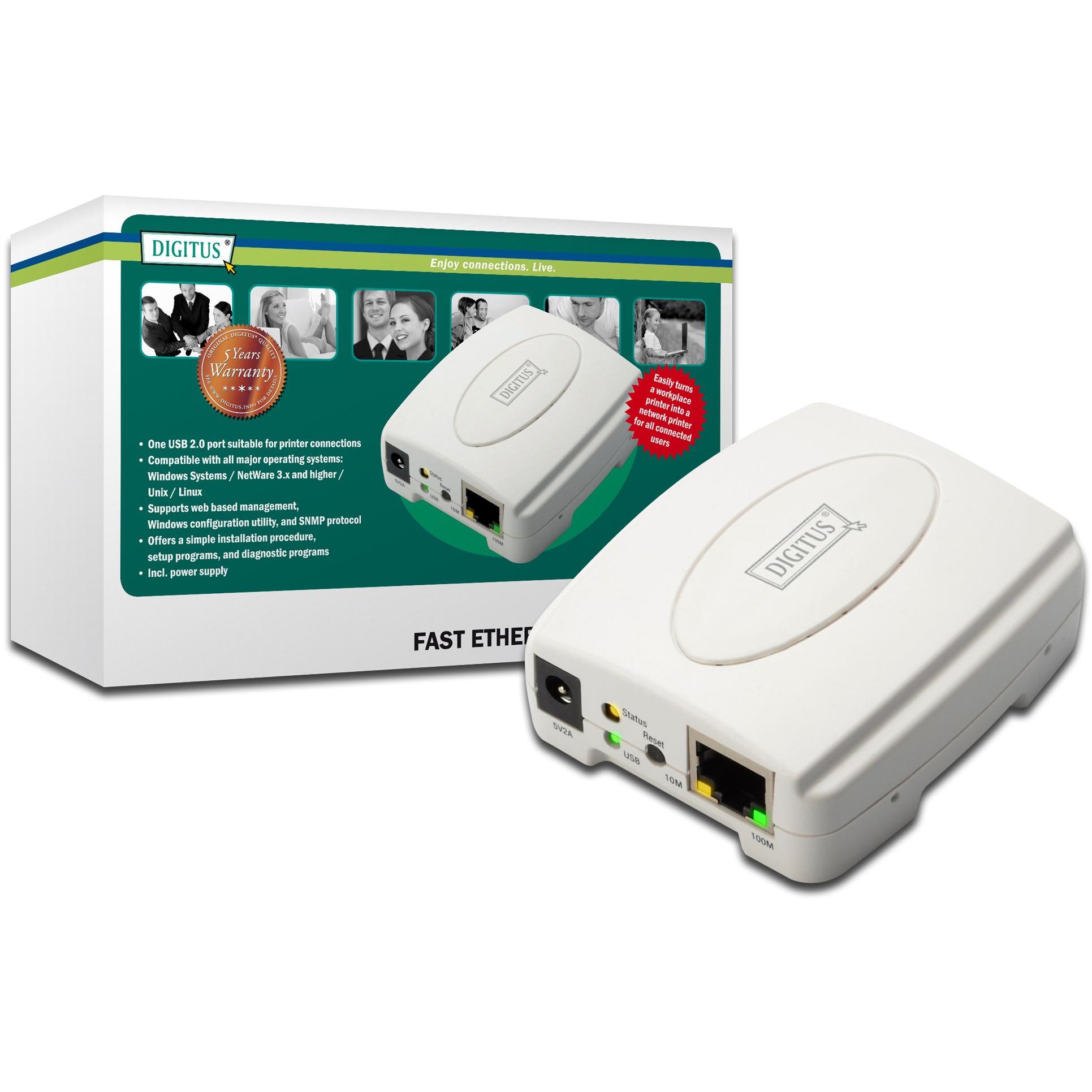 Stampante server USB 1 porta con connettori RJ45 femmina e USB A femmina