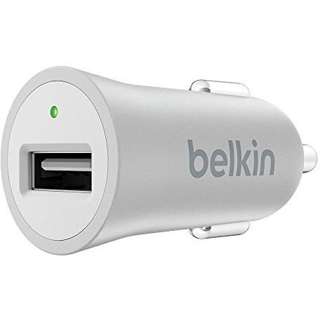 Il caricatore auto Belkin F8M730btSLV presenta un elegante corpo metallico argento che si fonde con il cruscotto, offrendo una porta USB da 12 W e 2 ...