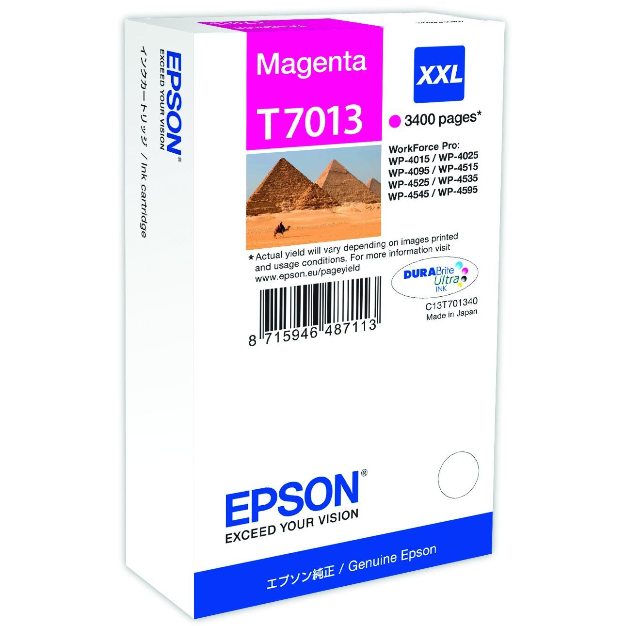 Cartuccia magenta originale Epson T701340 per le stampanti Workforce Pro WP‑4015/4025/4545, con tecnologia DuraBrite Ultra che offre colori intensi ...