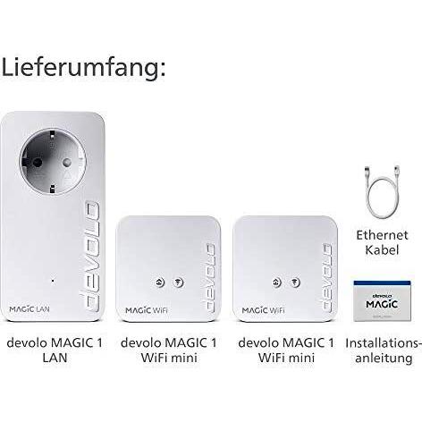 devolo Adattatore Powerline WLAN 8578, kit mini multiroom WiFi Magic 1 - fino a 1.200 Mbps, amplificatore Mesh WLAN, 2x connessione LAN, dLAN 2.0, bianco