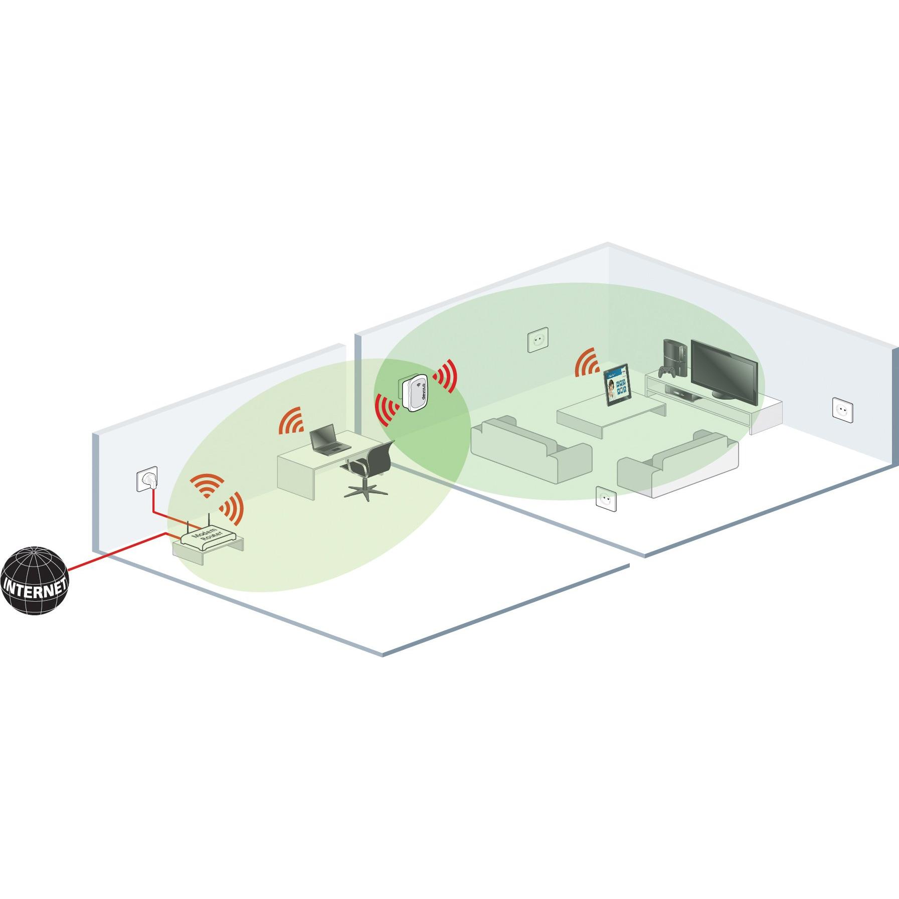 Amplifica il Wi‑Fi con un ripetitore compatto che raggiunge 300 Mbit/s e dispone di una porta Fast‑Ethernet per collegare dispositivi cablati. G ...
