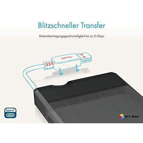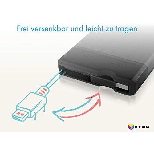 ICY BOX IB-235-U3 - External Housing for 1 x 2.5 Inch SATA HDD/SSD USB 3.0 Type-A (5 Gbps), Tool-less Mounting, Built-in Cable, Color: Grey
