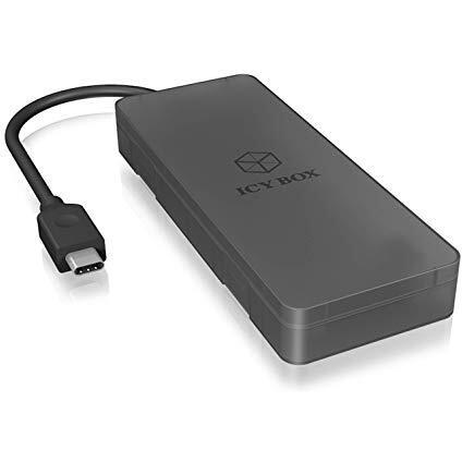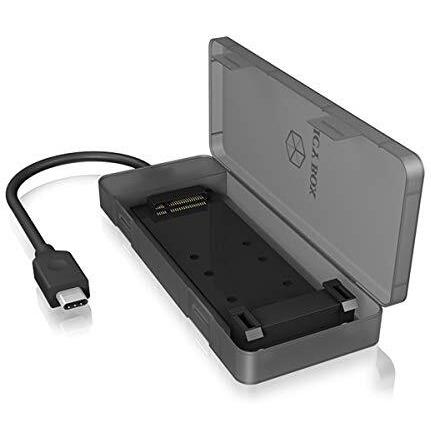 Esterno nero per SSD M.2 SATA con porta USB 3.1 Type‑C integrata e cavo incluso; montaggio senza attrezzi, compatibile con schede B‑key o B‑eâ ...