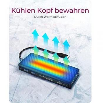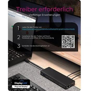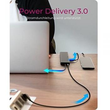 Docking Station Icy Box 9‑in‑1 con porta USB‑C e USB‑A, due uscite video HDMI/DP per schermi 4K a 60 Hz, hub USB 3.0, Ethernet Gigabit e P ...