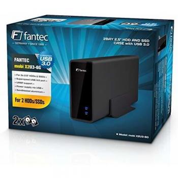 Il FANTEC mobi X2U3‑6G è una custodia in alluminio nero che accoglie due unità SATA da 2,5″, HDD o SSD, con interfaccia USB 3.0 Micro‑B per ...