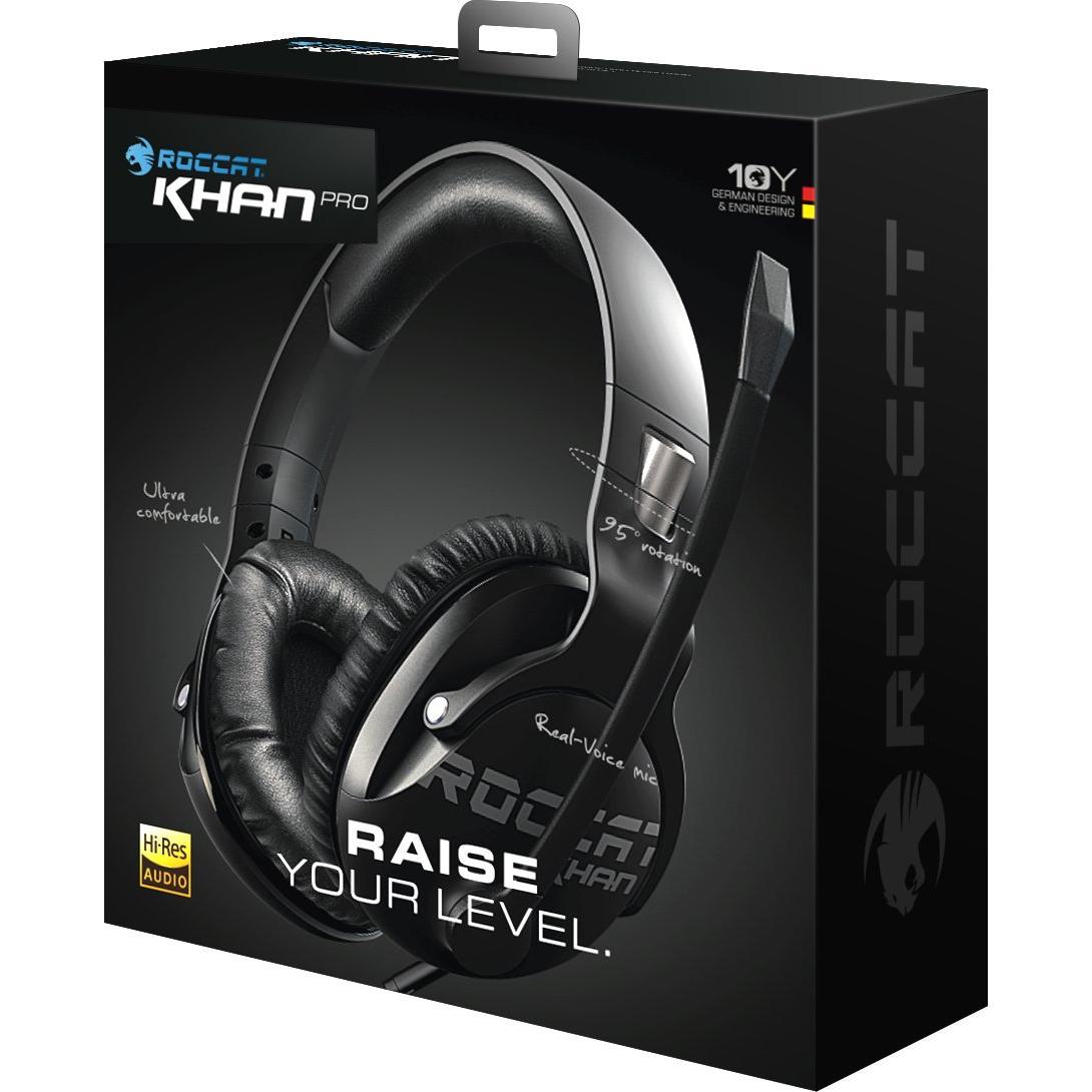Headset gaming ROCCAT Khan Pro con driver da 50 mm fornisce audio hi‑res, cancellazione attiva del rumore e microfono flip‑up mute. Leggero a 23 ...
