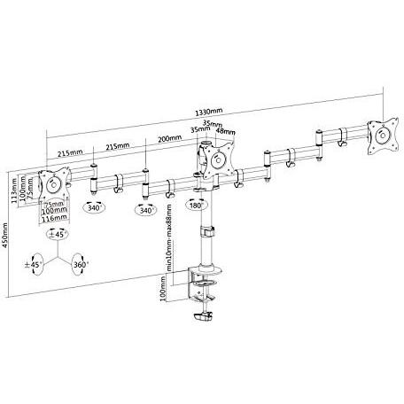 Tavolo Supporto Monitor Purelink PM-OFFICE-03, 27", Nero