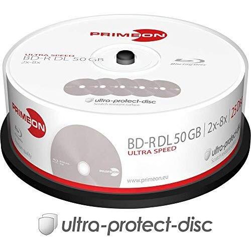 Primeon 2761318 Blu-ray BD-R DL vergine 50 GB 25 pz. Torre Rivestimento antigraffio