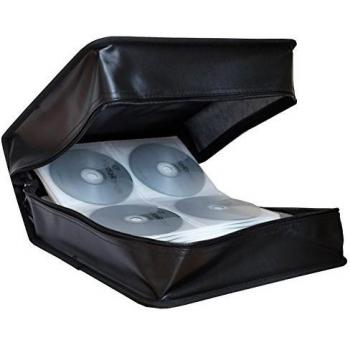 Borsa nera in ecopelle con capacità di 400 CD, DVD e Blu‑Ray, ideale per collezioni ampie. Il manico a mano offre trasporto comodo, mentre la chius ...