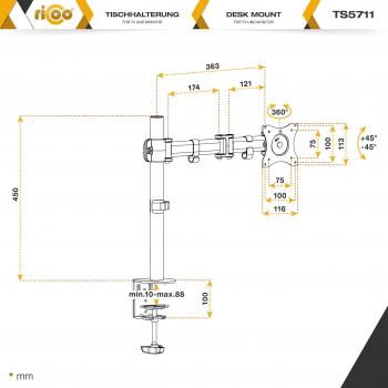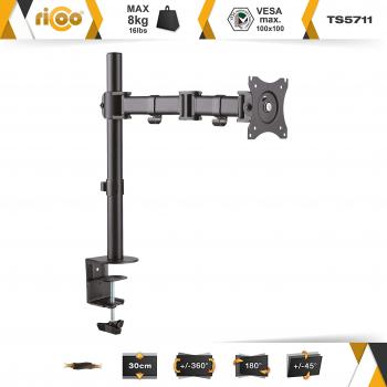 Supporto da tavolo RICOO TS5711 con braccio girevole e inclinabile, adatto a schermi 12‑29″ (30‑74 cm) e VESA 75x75/100x100. Regola l’altezz ...