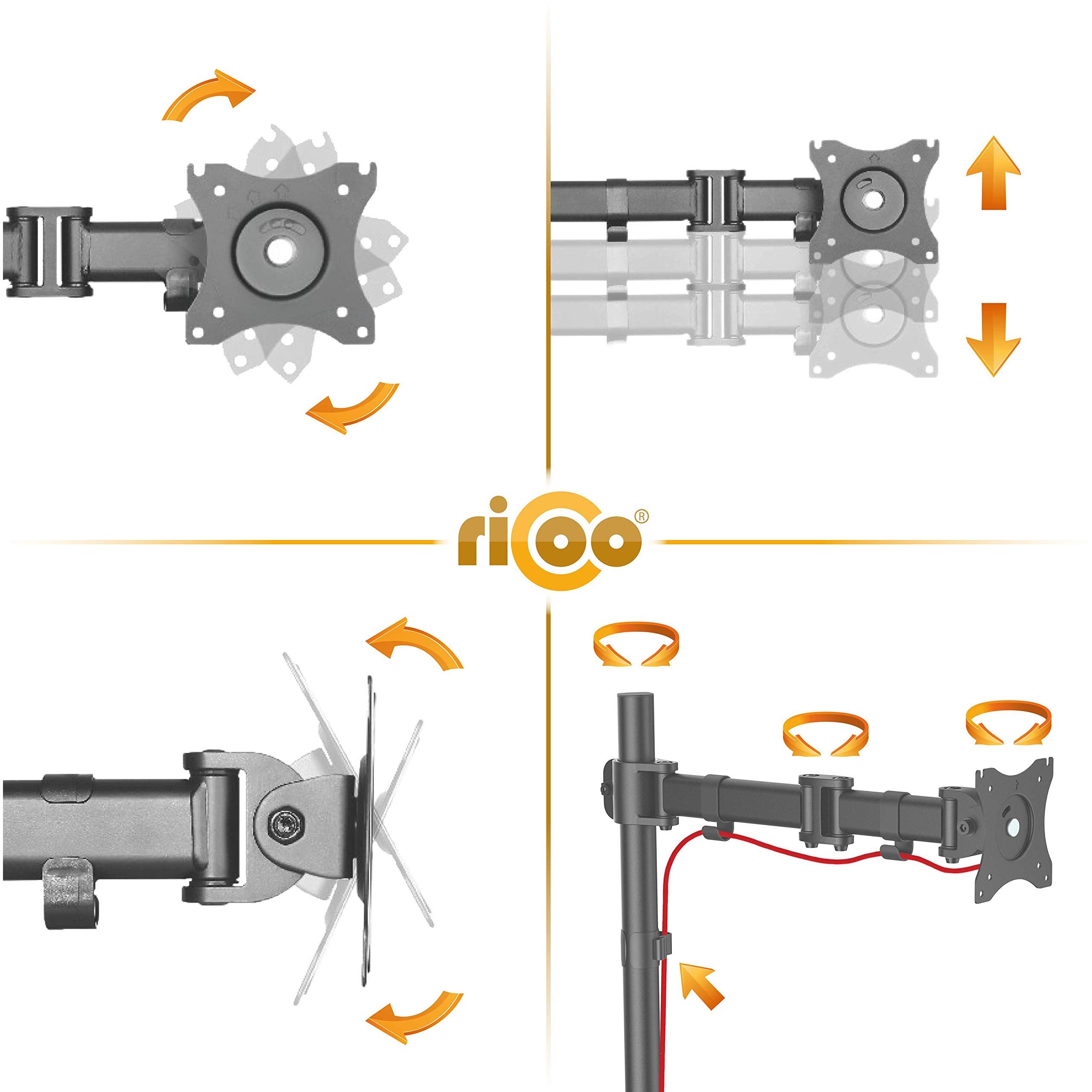 RICOO TS5711 Supporto per Monitor da Tavolo Schermo PC 12-29" pollici (30-74cm) Porta Girevole Inclinabile Staffa tavolo universale VESA 75x75 100x100