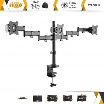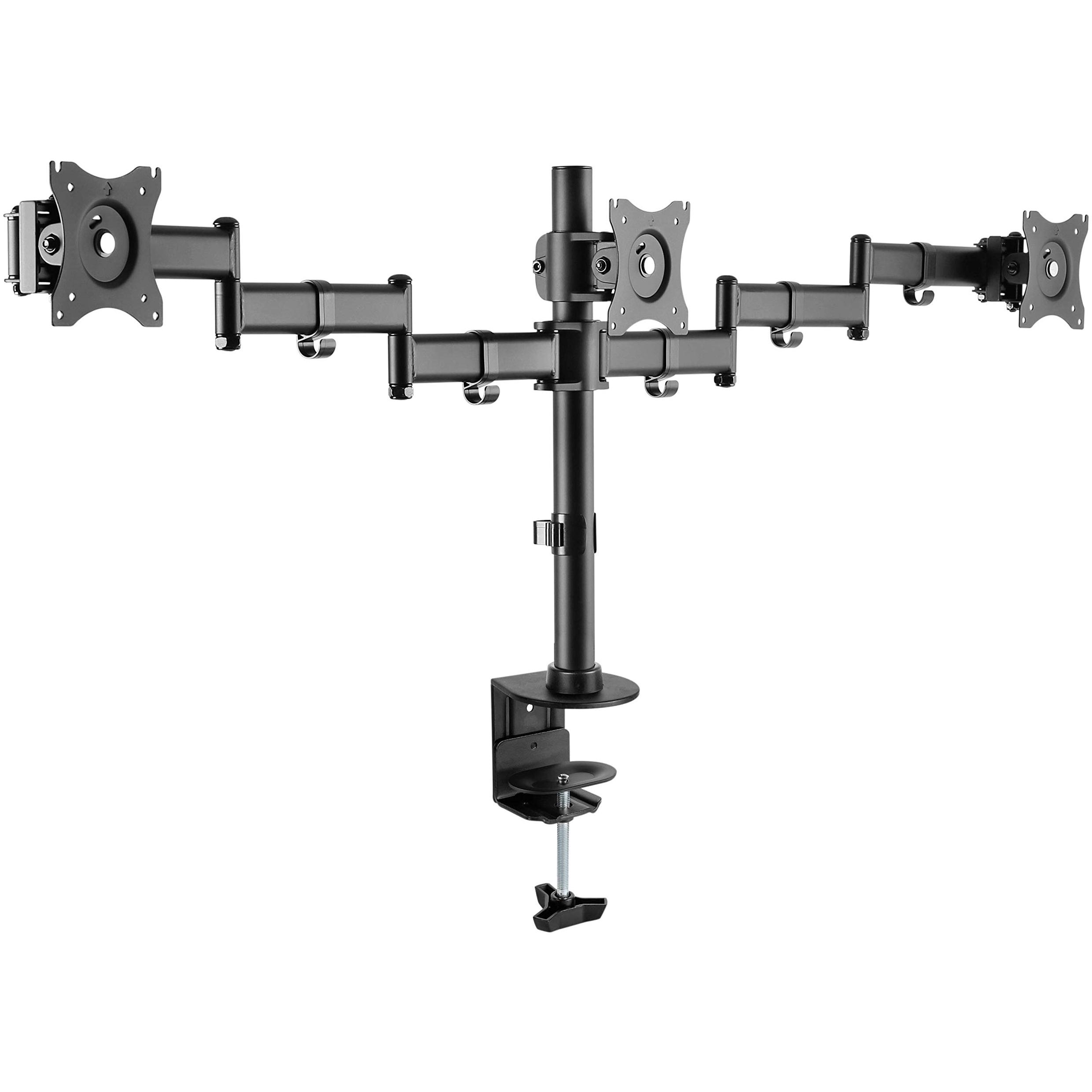 Braccio girevole e inclinabile che sostiene fino a tre monitor da 13‑27 pollici con VESA 75x75/100x100; regolazione dell’altezza, fissaggio salda ...