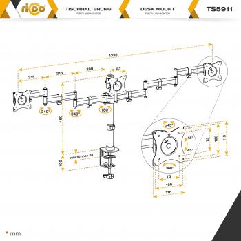 RICOO TS5911 Supporto monitor scrivania girevole inclinabile per schermi da 13 a 27 pollici (33 a 69 cm)