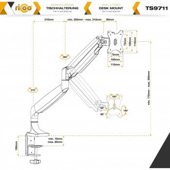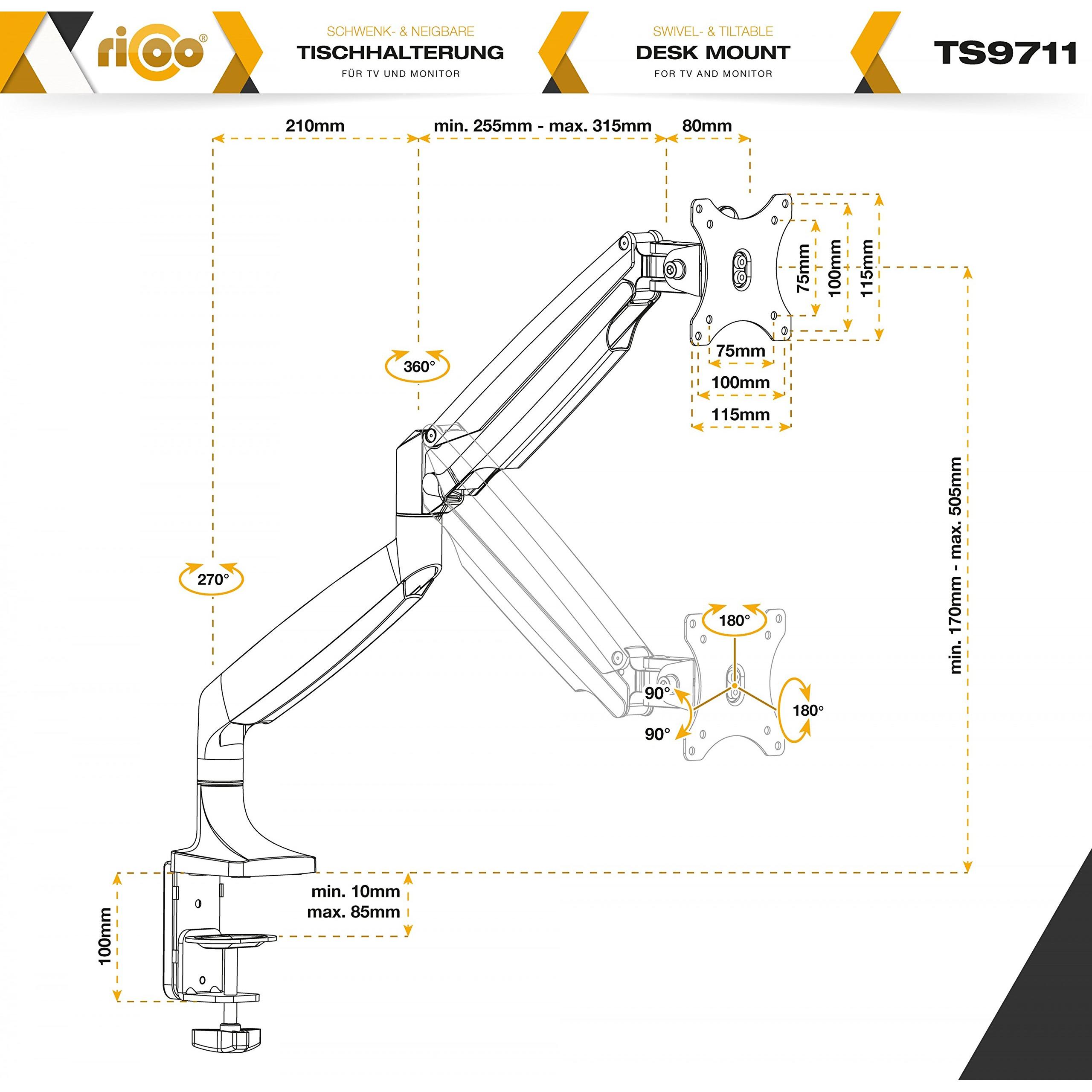 RICOO Braccio schermo PC Universale VESA 75x75 100x100