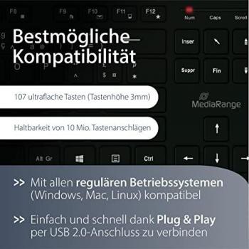 MEDIARANGE - Tastiera Usb Azerty Ultra Sottile E Piatta Con Cavo, Nero