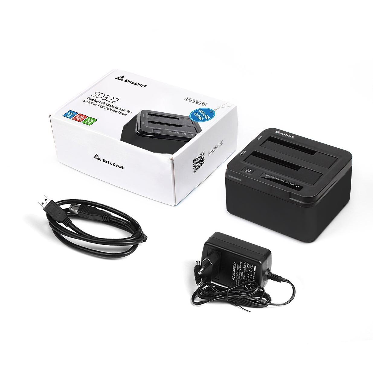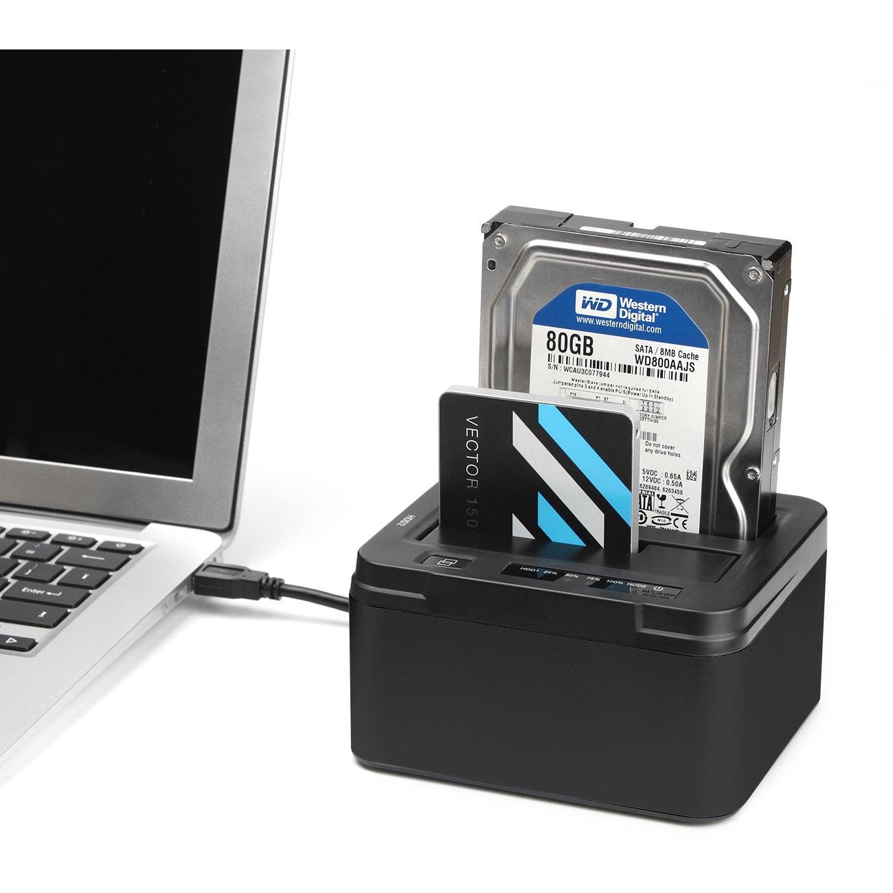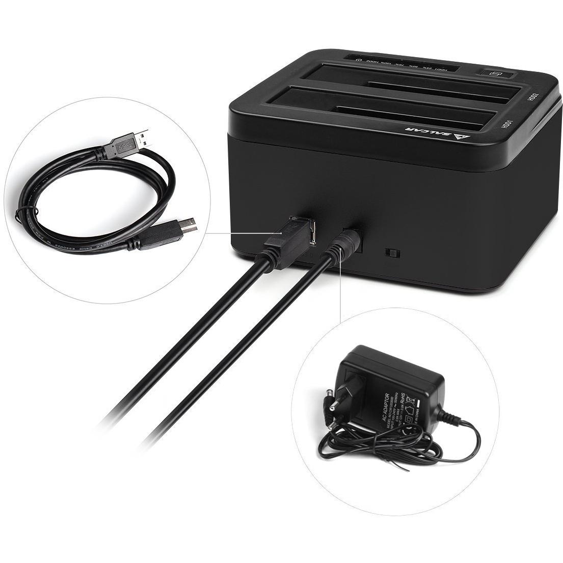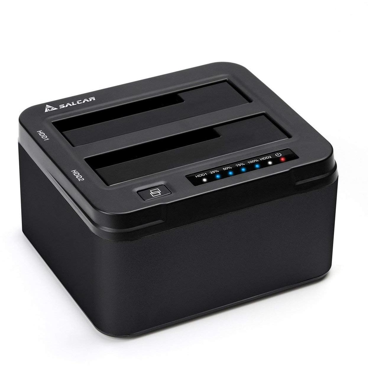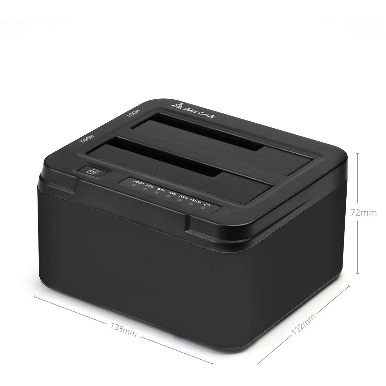 Salcar USB 3.0 Non In Linea Clone Docking Station 2-bay Ottimizzato Per Hard Disk Hdd / Ssd Da 2,5 E 3,5 Pollici (SATA I / II / III), Compreso Il Cavo Usb 3.0 E 12V Psu 3A, 2 X 8 Tb Aluminum (Nero)