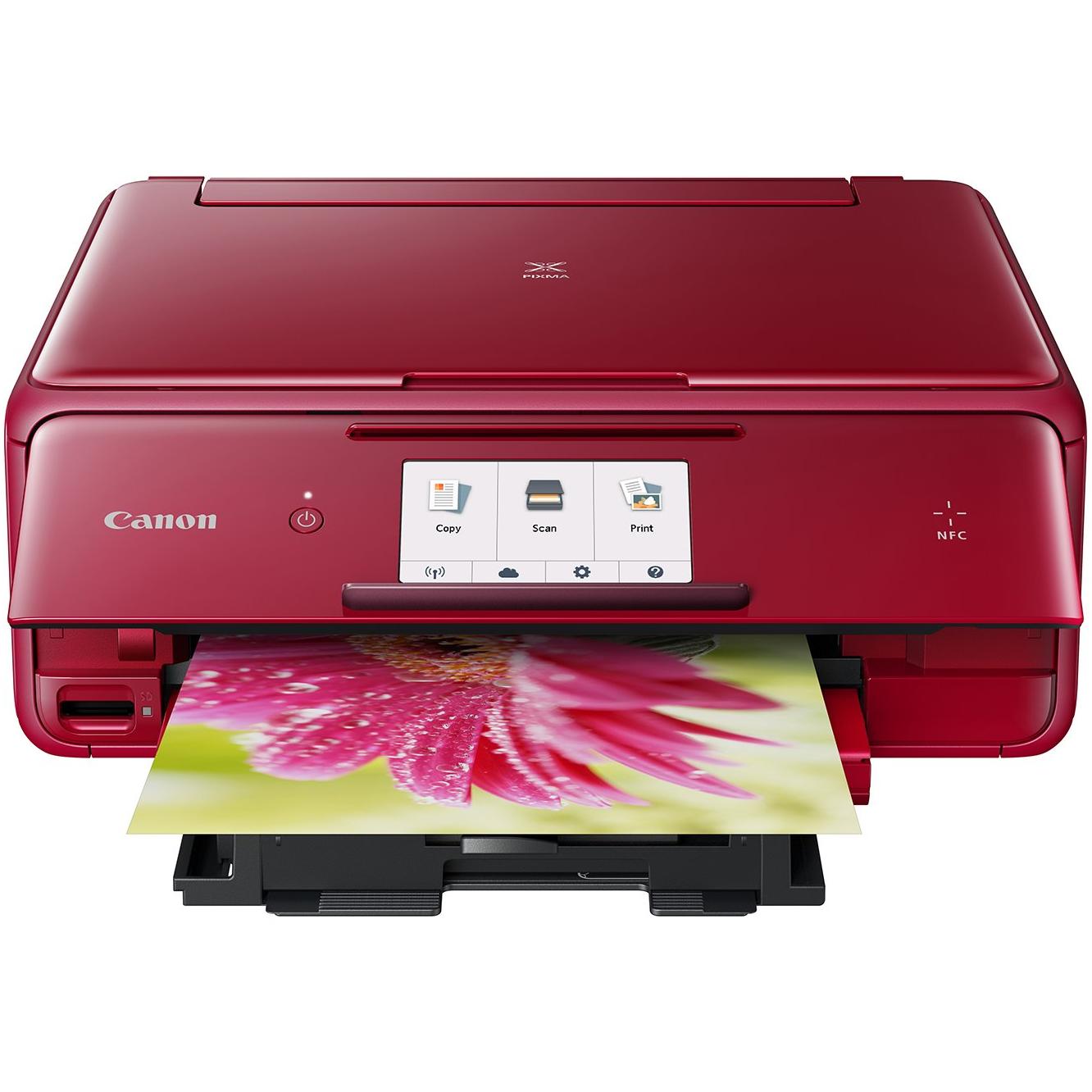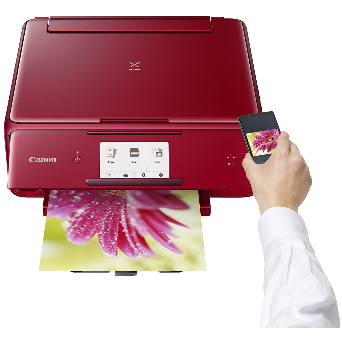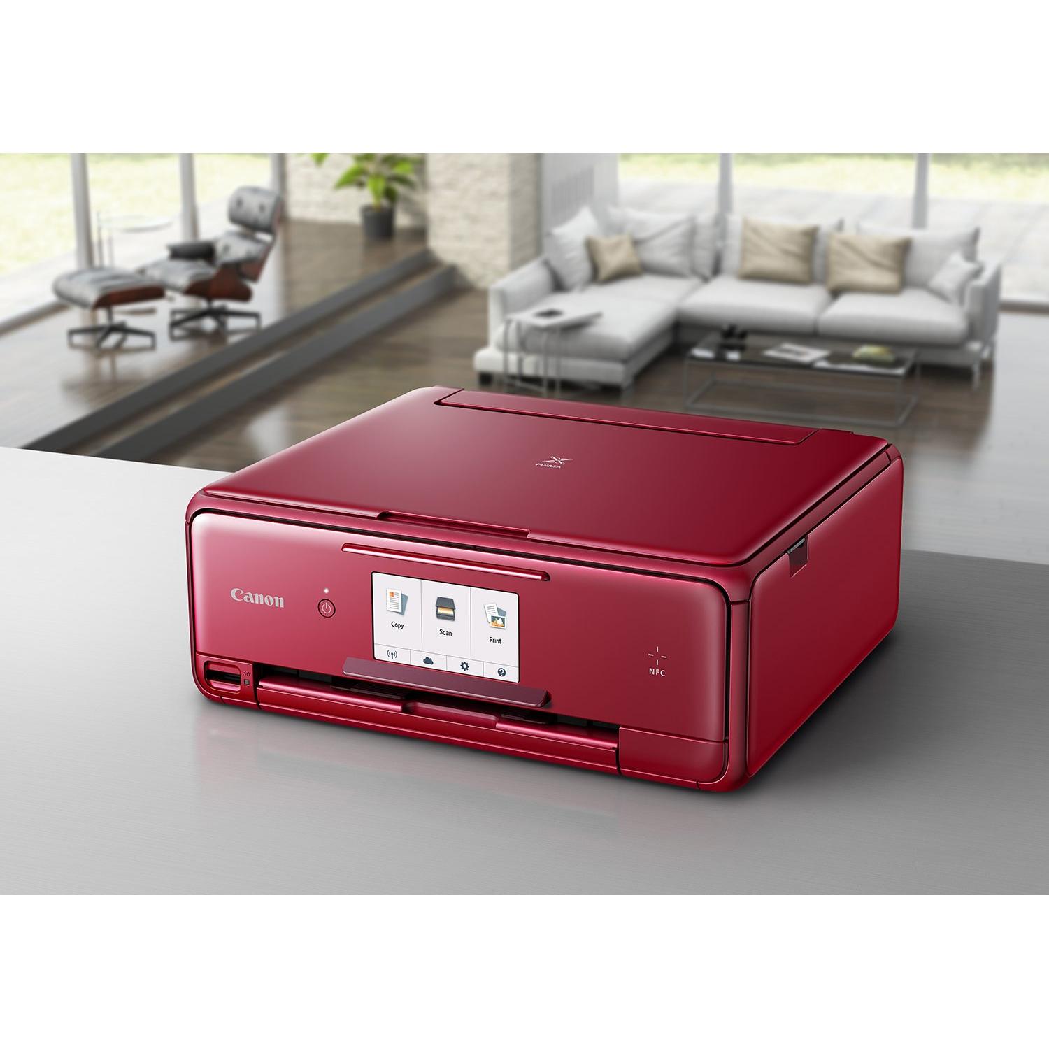 Stampante Canon Pixma TS8052 rosso con stampa a colori fino a 9600x2400 DPI, duplex automatico e scansione CIS 2400x4800 DPI. Wi‑Fi, AirPrint, NFC e ...