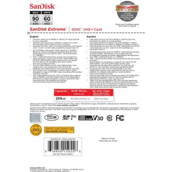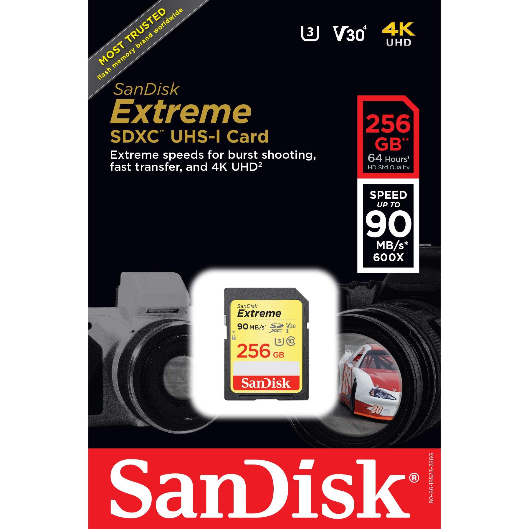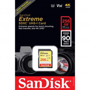 SanDisk Extreme 256GB – Scheda SDHC Classe 10 U3 V30 Velocità Lettura 90 MB/s