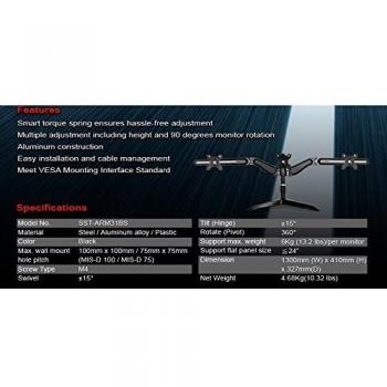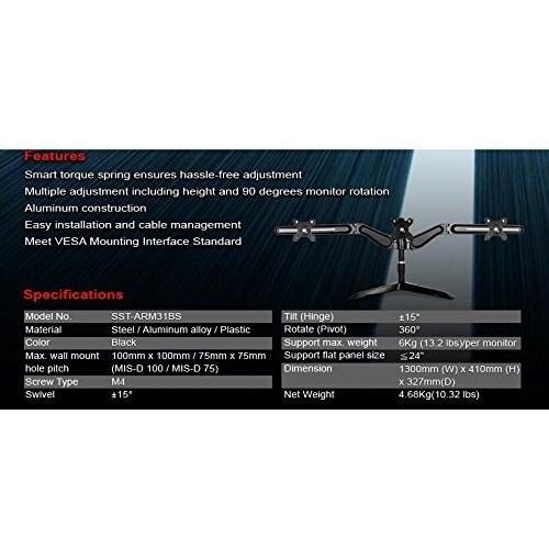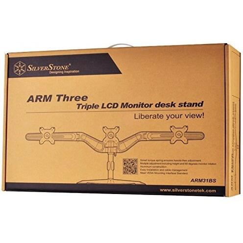 SilverStone SST-ARM31BS - Tre bracci per monitor LCD / LED, fino a 24", con Tilt & Swivel (Tilt ±15°|Swivel ±15°|Rotate 360°), nero