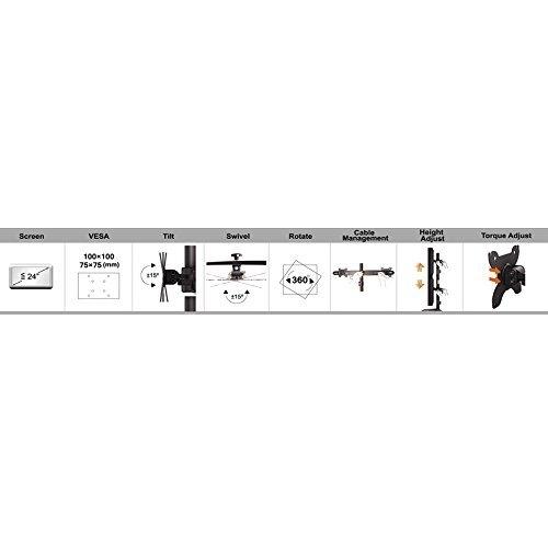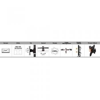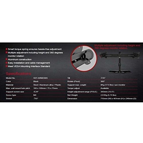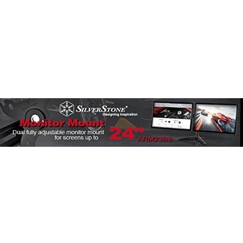 Silverstone SST-ARM23BS - Dual Arm Double Monitor Stand, LED/LCD Monitor up to 24", with Tilt and Swivel (Tilt ±15°|Swivel ±15°|Rotate 360°), Black