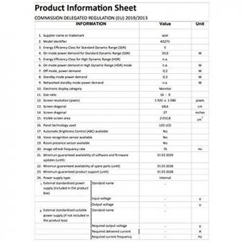 Acer Monitor Gaming KG271Pbmidpx Full HD 27" 144Hz 1ms
