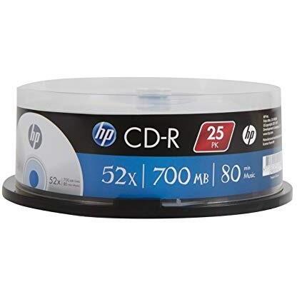 Disco ottico singolo da 700 MB, formato 12 cm, senza stampa sulla superficie. Confezione di 25 unità in cakebox con spindole HP per una gestione ...