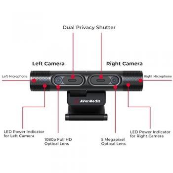 Webcam AVerMedia DualCam PW313D con doppio obiettivo e due microfoni, propone due prospettive contemporanee a 2592x1944 via USB 2.0; include copertura ...