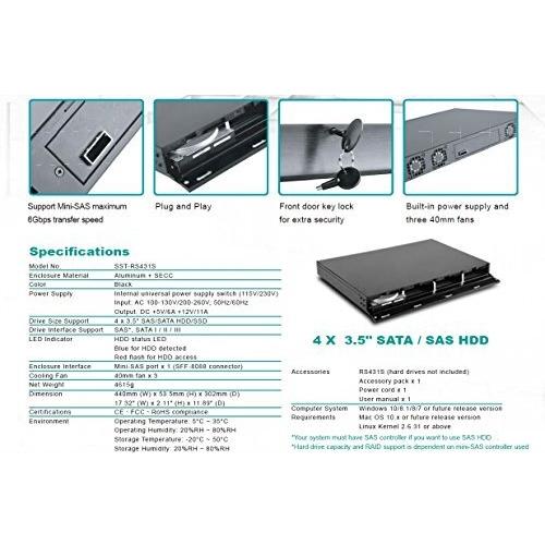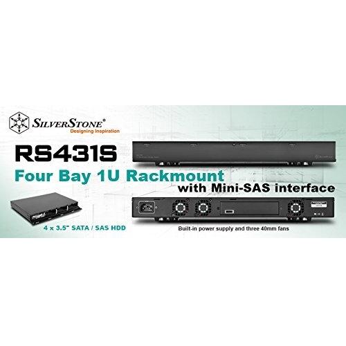 SILVERSTONE - SST-RS431S SilverStone SST-RS431S - 1U Rackmount - 4 Bay 3.5 Inch SAS / SATA mini SAS SFF8088x 2 External Trayless Hard Drive Enclosure,